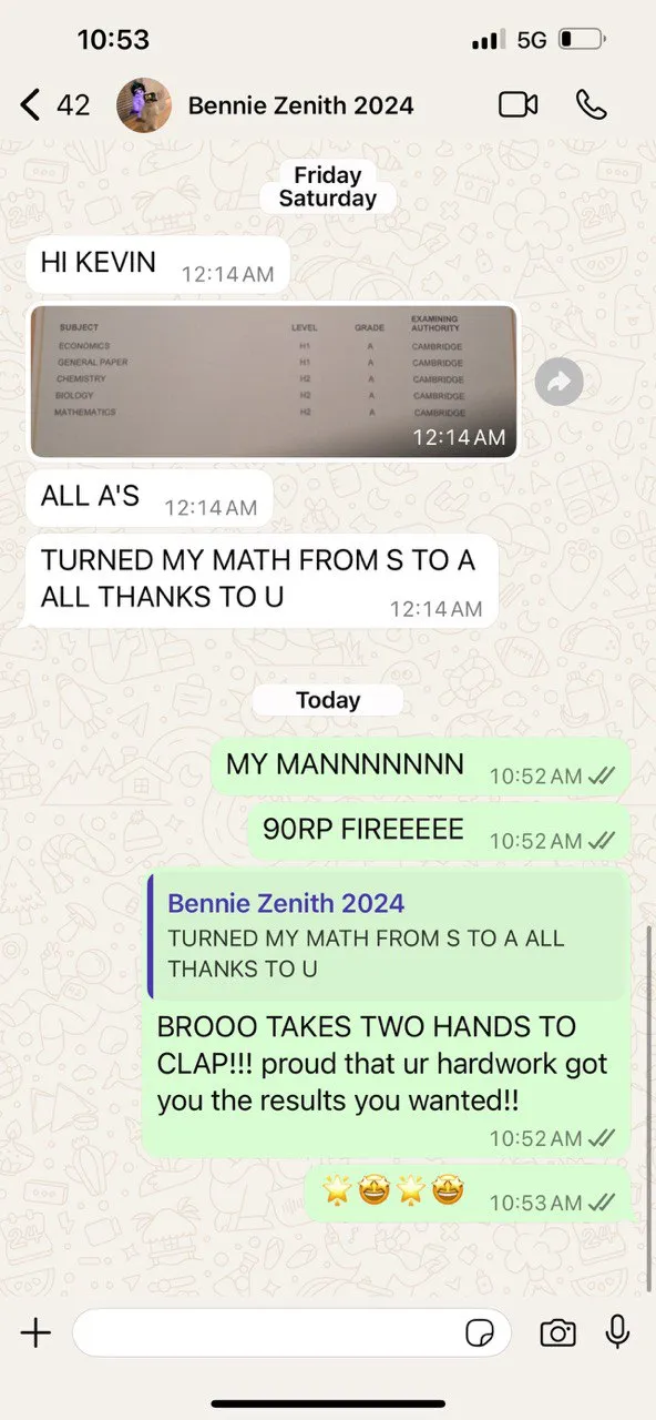 Through our Referral Programme, you’ll receive cash bonuses, fee waivers or exclusive rewards when a friend or family member enrols their child in any of our tuition classes, from O-Level and secondary IP chemistry to other primary school or even JC subjects.