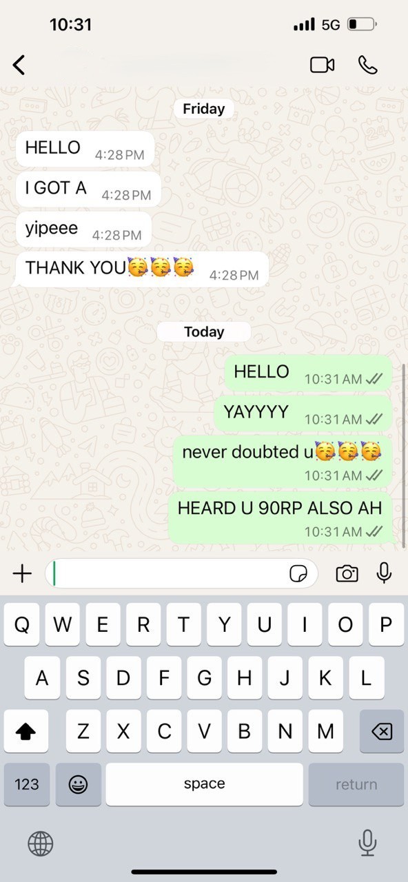 Thanks Duncan for helping me cope with the gruelling JC Physics syllabus!!! Genuinely, your explanations made it so much easier for me to internalise concepts quickly, which meant I could jump straight into practice for exams. Attending your lessons really helped me stay consistent and motivated for Physics 🤗🤗🤗